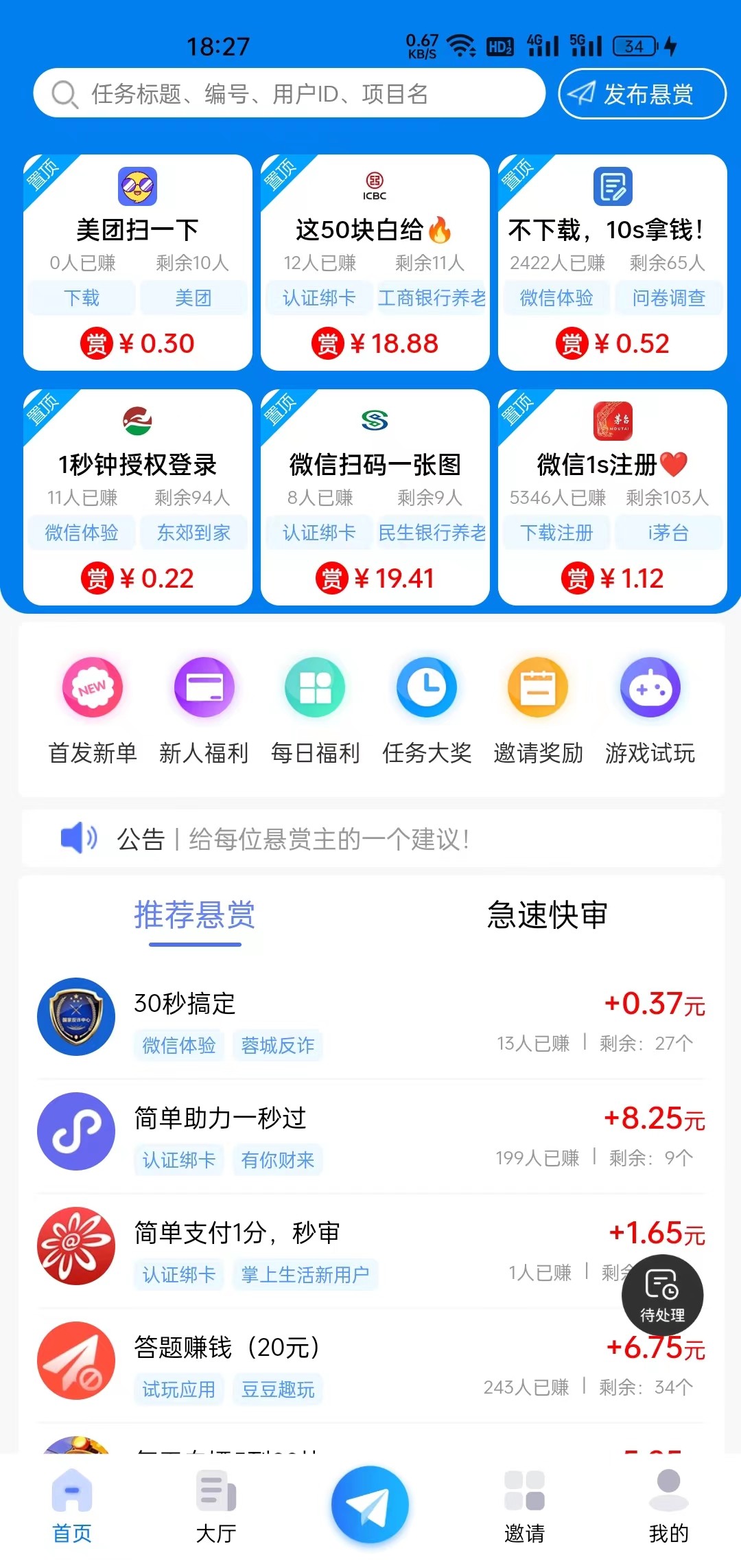 海量任务任务选,帮忙就能获得赏金.